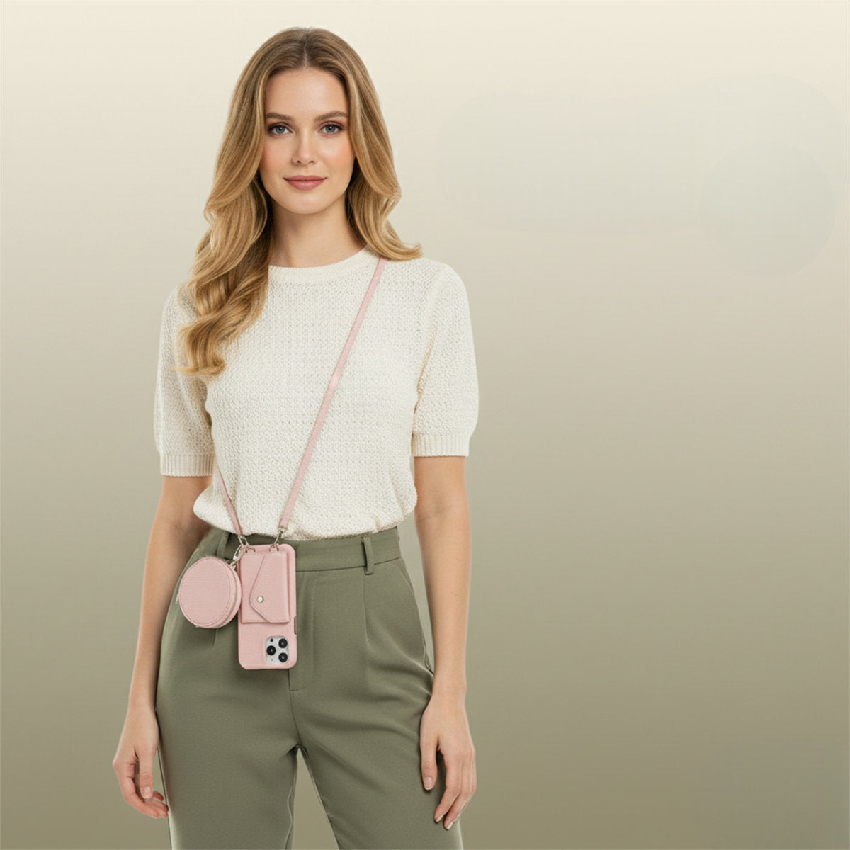 Vertical-Flap Leather Crossbody Wallet Phone Case